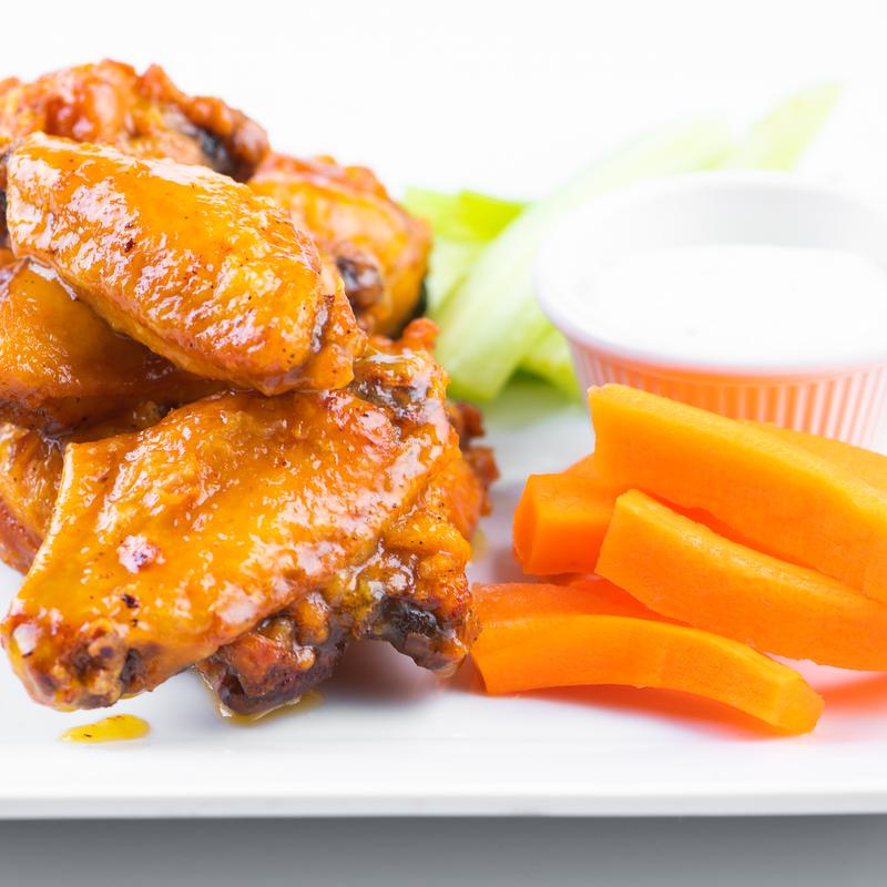 50 tamarind-chipotle or mild-buffalo sauce, celery, carrots, blue cheese dressing.