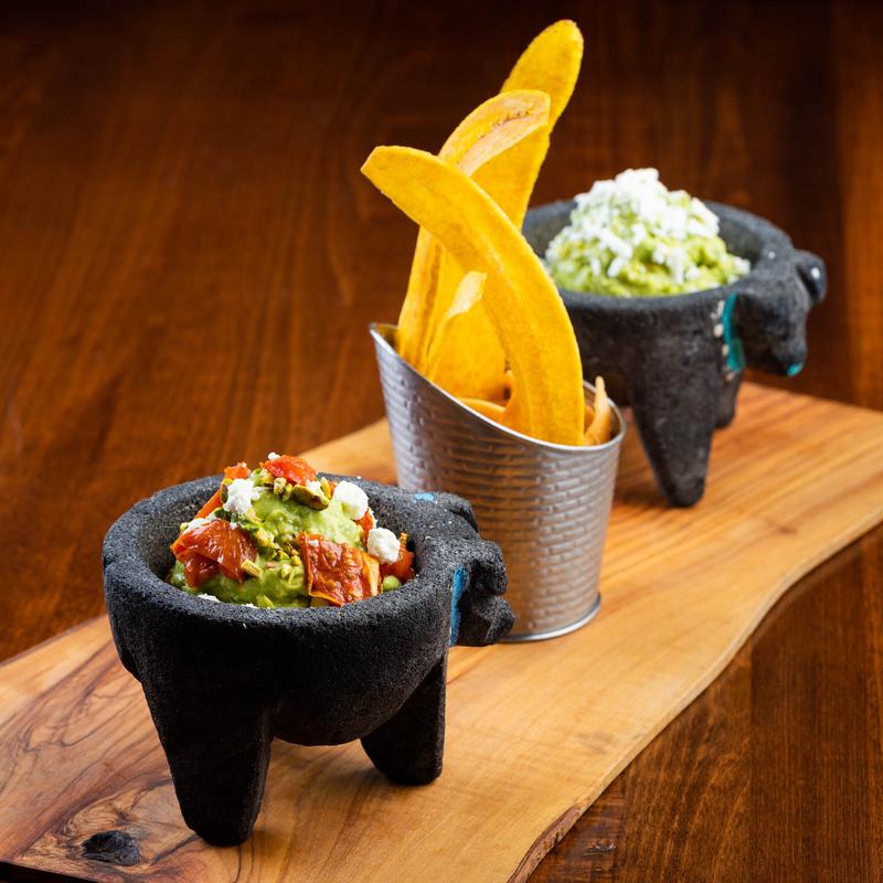 Avocado, onions, jalapenos, cilantro, roasted tomatoes, goat cheese, pistachios.