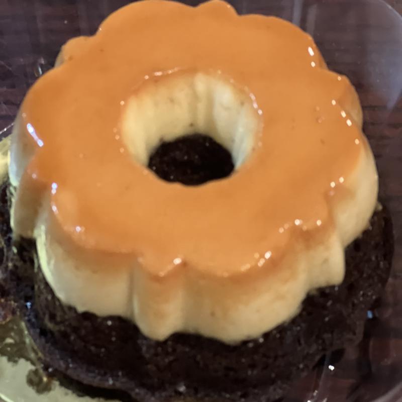 Chocolate cake, vanilla custard.