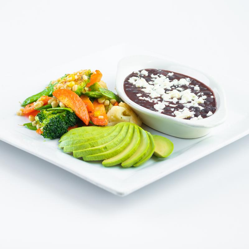 Oven-roasted rosemary veggies, black beans with queso fresco, avocado | Add chicken +$5.00