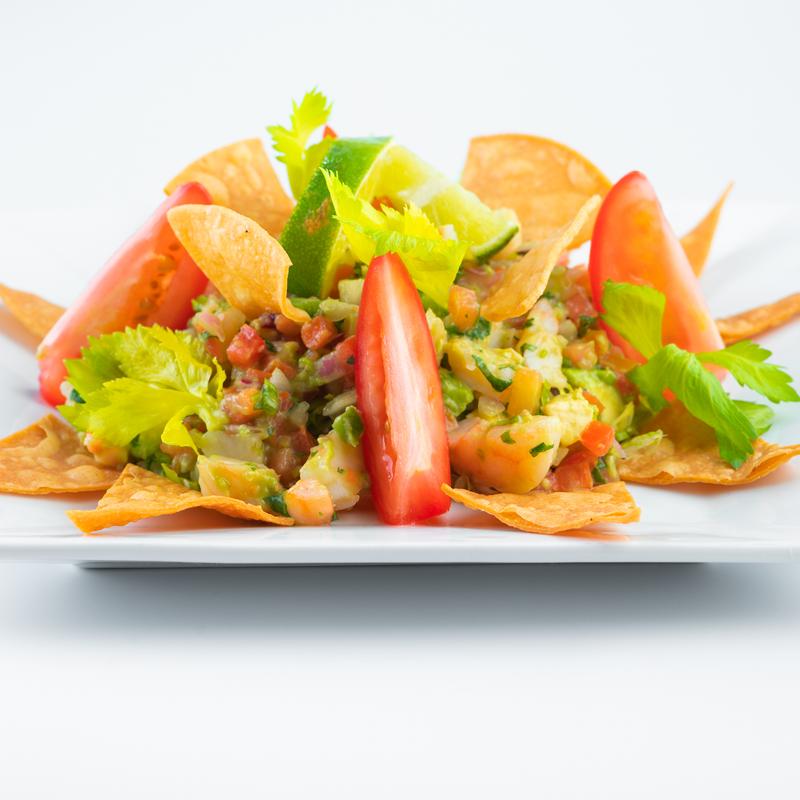 Shrimp, avocado, pico de gallo & lime juice.